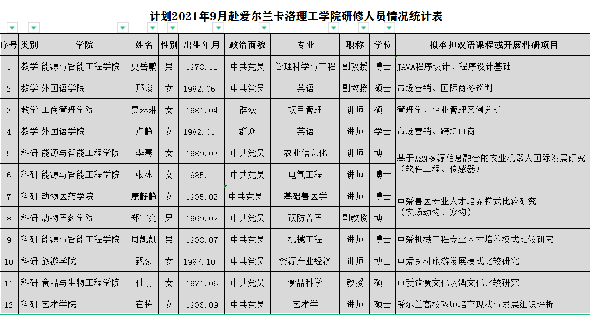 根据《关于遴选第三批赴爱尔兰研修教师的通知》要求,经个人申报、学院推荐、学校评审,拟推荐史岳鹏等12名教师赴爱尔兰研修,具体名单如下: