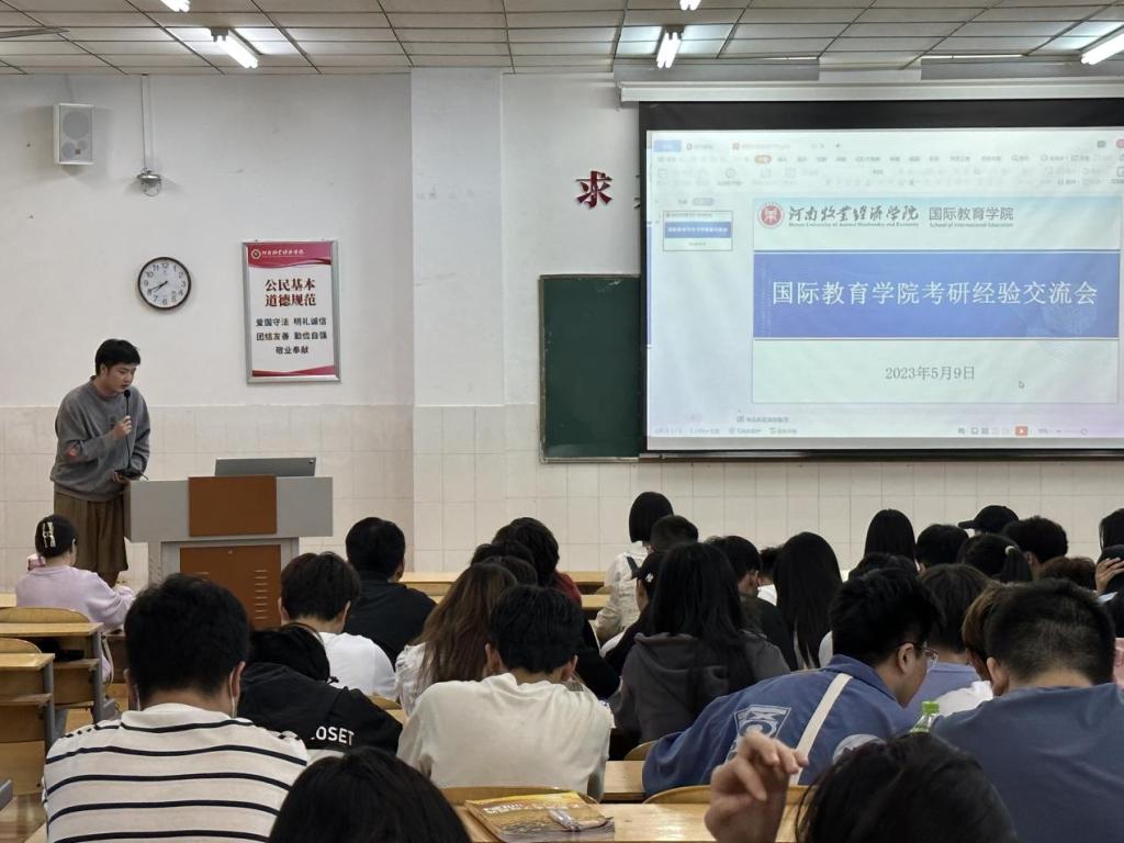 我院邀请了2023年被河南大学录取的柴静茹,江西理工大学录取的胡艺飞,河南师范大学录取的常珩,武汉科技大学录取的王紫嫣担任主讲人,在交流会上,几位同学从自身考研经验出发,围绕如何选取专业和院校、制定复习计划、调整心态以及复试中的注意事项等方面做了经验分享。4位考研上岸的同学都强调了认真复习的重要性,建议同学们选取专业和院校时不能盲从,不要只局限于与考研专业相关的书籍,应多读不同类型的书,拓宽视野。最后,大家就如何选择考研专业、是否选择培训班以及复习备战过程中遇到的问题如何解决等向学长学姐寻求意见建议,他们一一进行了耐心细致的解答,并向同学们推荐了一些优秀的教辅资料。