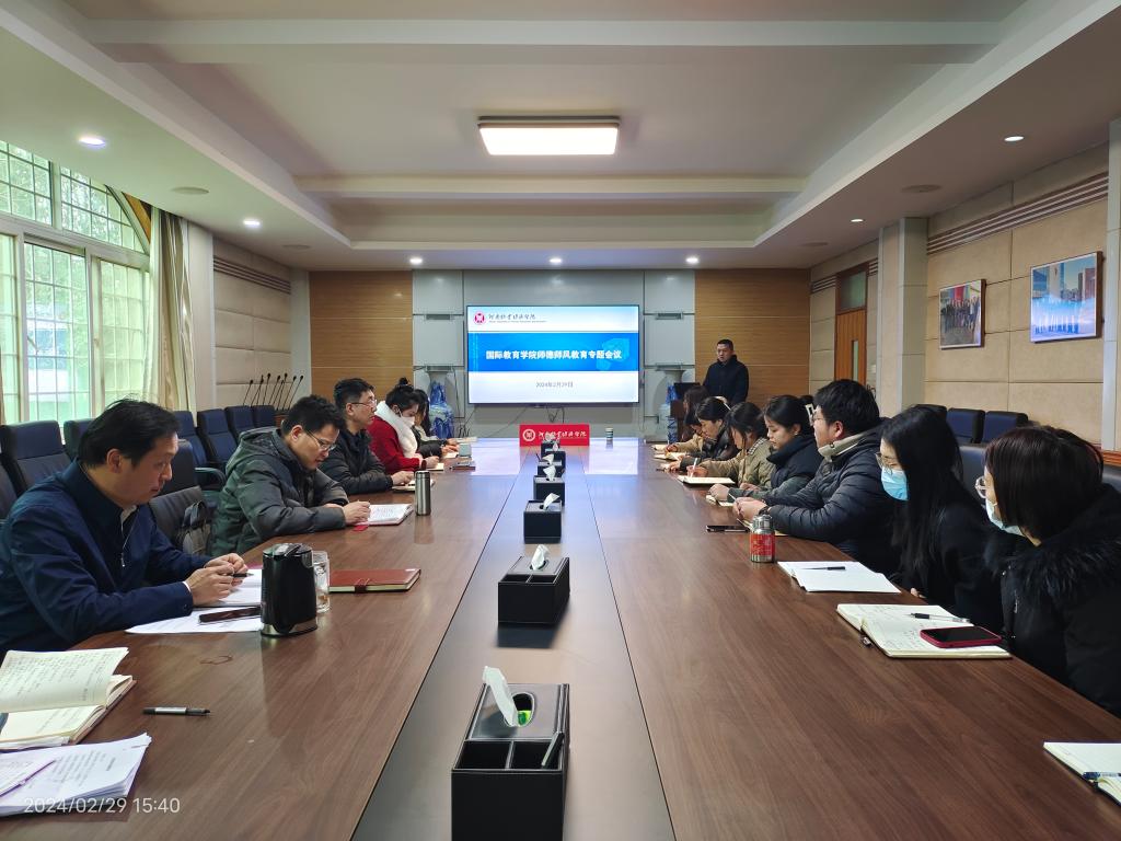为深入学习贯彻习近平新时代中国特色社会主义思想和党的教育方针,加强师德师风建设,增强教师的责任感、使命感,2月29日下午,国际教育学院在教学办公楼113会议室组织召开师德师风教育专题会议,学院全体教职工参加了学习。
