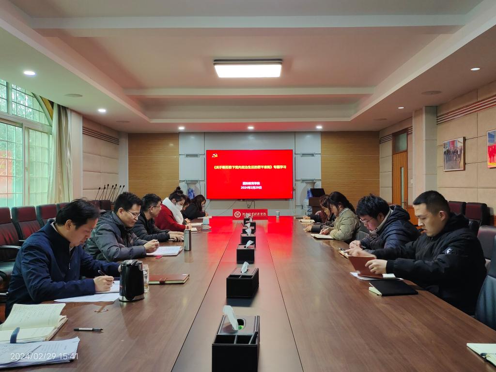 根据校内巡察反馈意见和学院整改工作要求,2月29日,新葡的京集团8814检测站党委在教学办公楼113会议室召开专题会议,集中学习《关于新形势下党内政治生活的若干准则》(以下简称《准则》)。全体教工党员参加会议。会议由院党委书记贾江主持。