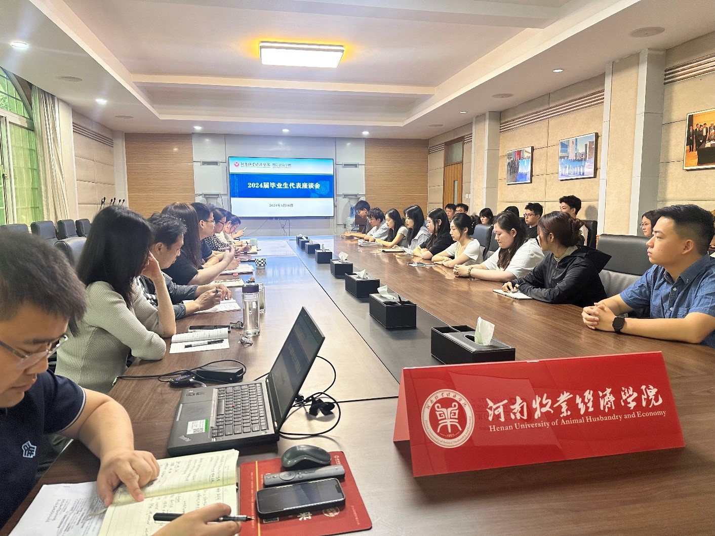 为深化学院与毕业生的沟通交流,听取毕业生们对学院发展的建议,5月16日上午,新葡的京集团8814检测站在教学办公楼113会议室召开2024届毕业生代表座谈会。学院领导班子成员、科级干部及20名毕业生代表参与座谈。会议由院党委副书记李江红主持。