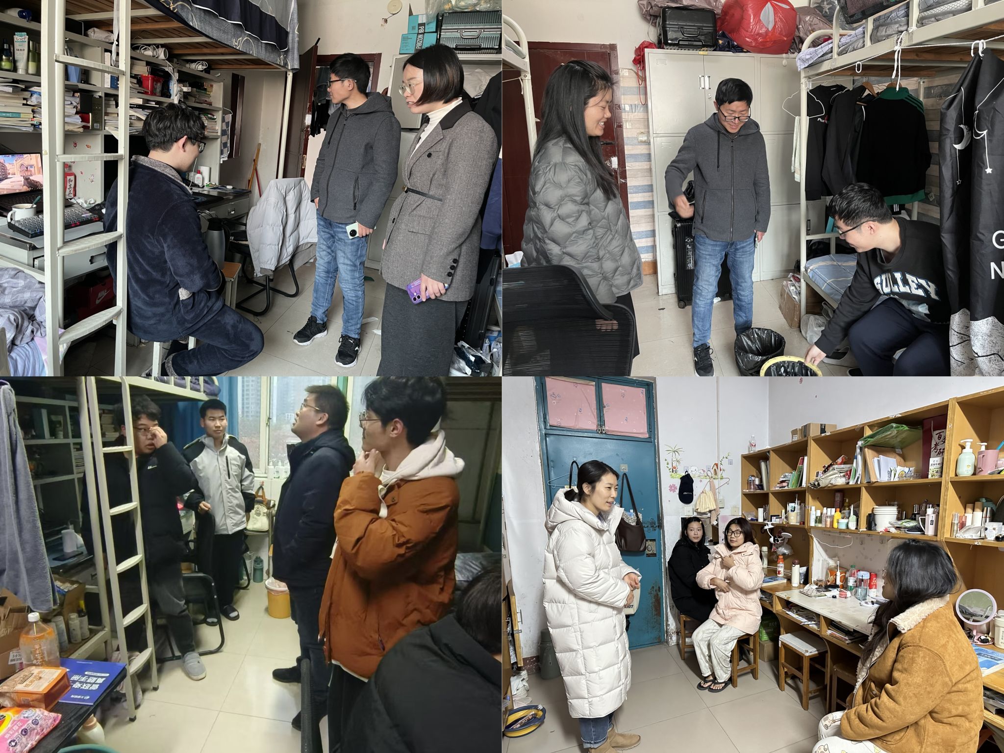 走访中,辅导员和班主任与同学们亲切交流,关心同学们的学习和生活,并对学生宿舍的用电安全及卫生状况进行细致检查,针对个别宿舍存在的插线板老化、卫生死角未清理门口堆积垃圾等情况,现场提出整改意见并安排专人跟进落实,同时向学生普及防火防盗、反诈骗等知识,进一步织密安全防护网。针对寒假后学生可能存在的心理问题,辅导员和班主任通过一对一谈心谈话,了解学生假期生活、家庭变故及返校适应情况,对存在焦虑、学业压力等情绪的学生建立动态台账,联动心理健康中心提供精准帮扶。