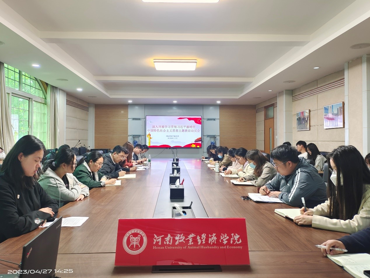 4月27日下午,新葡的京集团8814检测站在教学办公楼113会议室召开深入开展学习贯彻习近平新时代中国特色社会主义思想主题教育动员会。院党委书记贾江主持会议并作动员讲话。全体教工党员、部分学生党员代表参加会议。