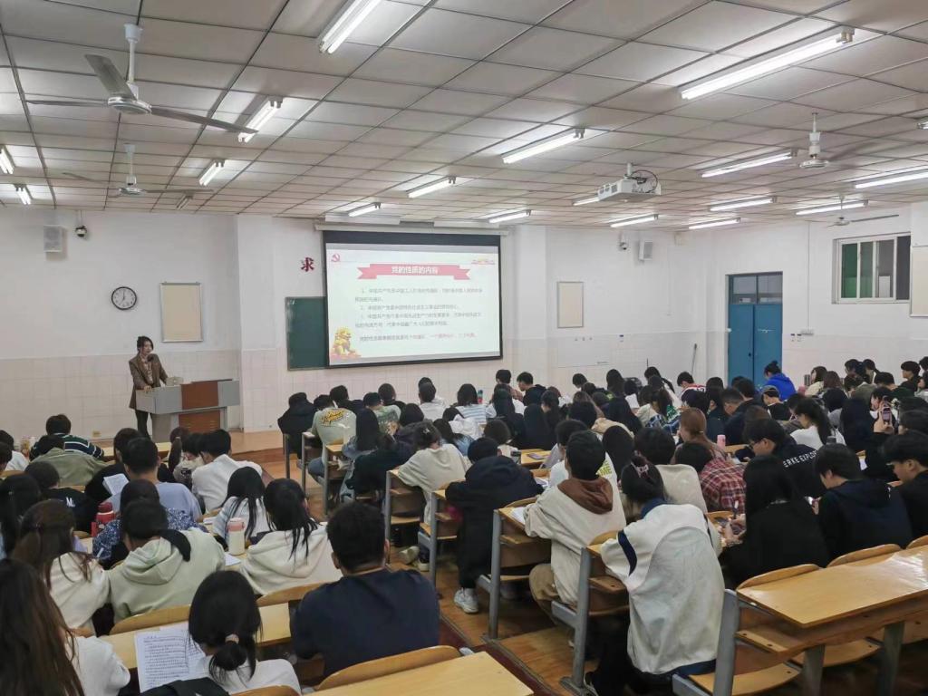 为深入学习宣传贯彻习近平新时代中国特色社会主义思想及党的二十大精神,切实做好入党积极分子的教育培养工作,保证新发展党员质量,10月24日晚上,新葡的京集团8814检测站2023年第二期入党积极分子培训班第七讲《党的性质与宗旨》专题党课在英才校区E209教室举行。本次党课由学生第三党支部书记侯思琦老师主讲。